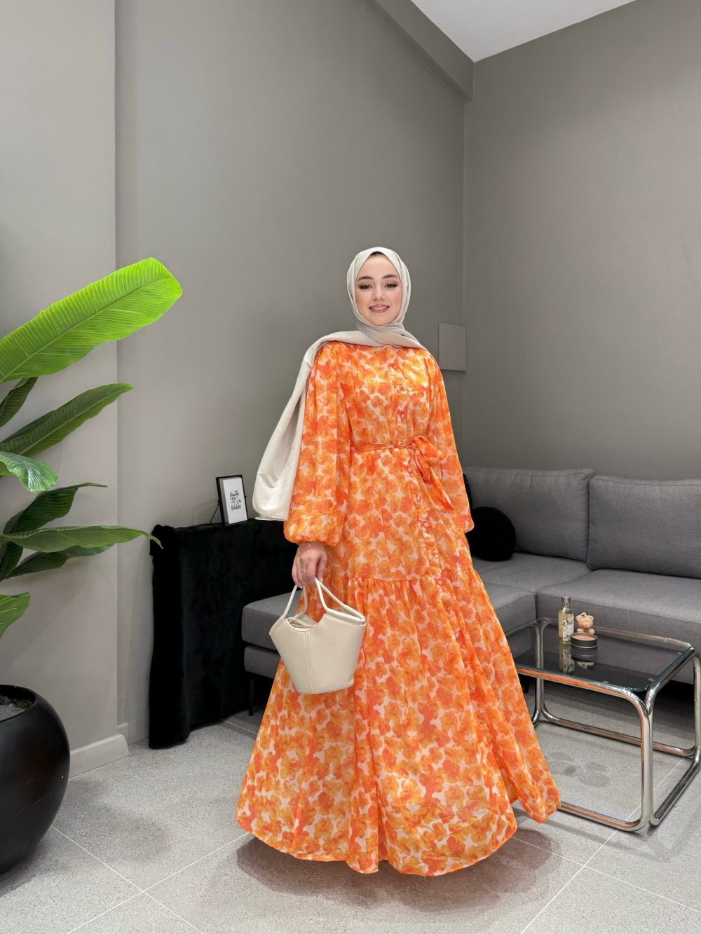 Notre article est fabriqué en tissu chiffon imprimé. Il possède des boutons recouverts de tissu sur toute la longueur. Il est entièrement doublé, y compris les manches. Il est livré avec une ceinture amovible.